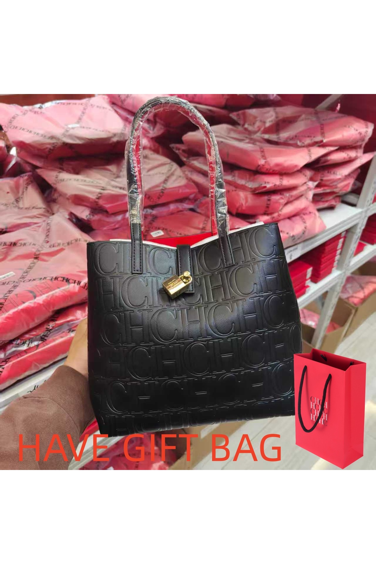 حقيبة دلو سوداء متوسطة الحجم من CHCH، إغلاق مغناطيسي، تصميم منقوش بحروف بارزة، يمكن حملها على الكتف
